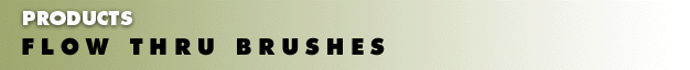 General applications for any brush are: Applying, Pushing, Removing, Cleaning, Spreading, or acting as a Barrier. Specific Uses for Flow Thru brushes Include: Application of All Liquid Media Including But Not Limited To: